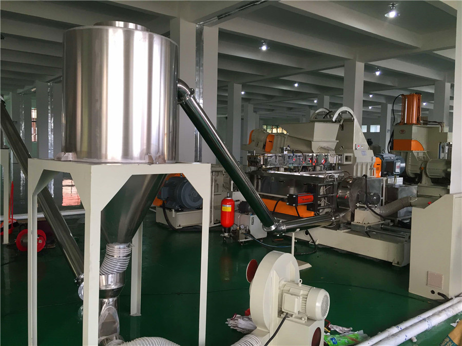 環(huán)保雙螺桿造粒機設備特點::整套設備主機是環(huán)保型;設備不需要接外循環(huán)水系統(tǒng);自帶循環(huán)冷統(tǒng)是我公司專利產(chǎn)品,(發(fā)明專利號:CN201911312134.6)1.最大好處:整套0水排放;無水污染;環(huán)保好過2.雙螺桿齒輪箱冷卻采用:采用環(huán)保冷卻系統(tǒng)(環(huán)保型:發(fā)明專利號:CN201911312134.6)不需要接外循環(huán)水冷卻,不用徘外水;采用閉環(huán)循環(huán)系統(tǒng),不用擔心長時間使用水冷卻會產(chǎn)生水垢把冷卻器堵住,導致齒輪箱損壞3.雙螺桿主機水箱冷卻系統(tǒng)采用:采用環(huán)保冷卻系統(tǒng)(環(huán)保型:發(fā)明專利號:CN201911312134.6)不需要接外循環(huán)水冷卻,不用徘外水;采用閉環(huán)循環(huán)系統(tǒng)4.真空泵采用環(huán)保冷卻系統(tǒng)(環(huán)保型:發(fā)明專利號:CN201911312115.3)不需要接外循環(huán)水冷卻,不用徘外水;采用閉環(huán)循環(huán)系統(tǒng),5. 不銹鋼水槽:一臺,L=6米,加寬加深,槽體為不銹鋼材質(zhì);水槽與吸干機過度體一件;不銹鋼材質(zhì),水槽熱水經(jīng)過濾器到環(huán)保型冷卻器;水槽架里安裝:4組環(huán)保風冷卻系統(tǒng)(環(huán)保型:發(fā)明專利號:CN201911312134.6)不需要接外循環(huán)水冷卻,不用徘外水;采用閉環(huán)循環(huán)系統(tǒng);6.節(jié)能:普通筒體筒體冷卻;例如:第5區(qū)溫度超高;這是電子閥導通;第5區(qū)冷卻回水就會影響第六區(qū)和第四區(qū)的溫度下降;就會導致第四六區(qū)加溫;這種情況會一直循環(huán)出現(xiàn);導致電費浪費;我們現(xiàn)在采用環(huán)保型就徹底解決這個問題;我們設備比同類設備節(jié)能:10-15%電費7.減少投資款:水池及冷卻塔成本:水池尺寸及成本:1.3米*3米*2.5米冷卻水池;大概成本:3萬左右, 60立方冷卻水塔及2.2KW高壓水泵2臺及管道,2天水管施工:大概成本:3萬 能減少固定投資大概:6萬元左右