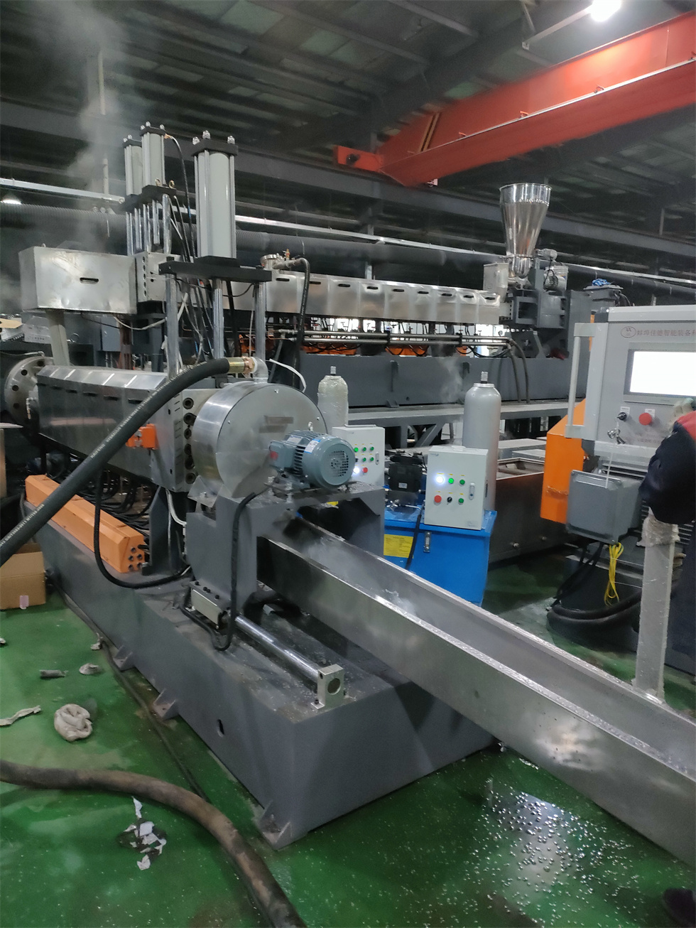 雙螺桿抽粒機(jī)_雙螺桿抽粒機(jī)_佳德造粒機(jī)JDL-75B雙螺桿水拉條機(jī)組一、系統(tǒng)機(jī)組技術(shù)參數(shù)Ⅰ、機(jī)器顏色:主機(jī)為公司標(biāo)色;電柜為電腦色Ⅱ、造粒工藝:單螺桿計(jì)量式喂料——-JDL-75B雙螺桿擠出機(jī)---—液壓板式換網(wǎng)——拉條機(jī)頭----6米不銹鋼水槽-----吹干機(jī)----龍門切粒機(jī)-----主機(jī)采用:PLC控制Ⅲ、作業(yè)物料:破碎料 產(chǎn) 量:400-600公斤/小時(作業(yè)條件不同,雙螺桿抽粒機(jī)產(chǎn)量稍有不同)設(shè)備特點(diǎn):整套設(shè)備是環(huán)保型,設(shè)備不需要接外循環(huán)水系統(tǒng);自帶循環(huán)冷卻統(tǒng)是我公司專利產(chǎn)品m.ywkzsh.com(發(fā)明專利號:CN201911312134.6)1.最大好處:整套0水排放;無水污染;環(huán)保好過2.雙螺桿齒輪箱冷卻采用: